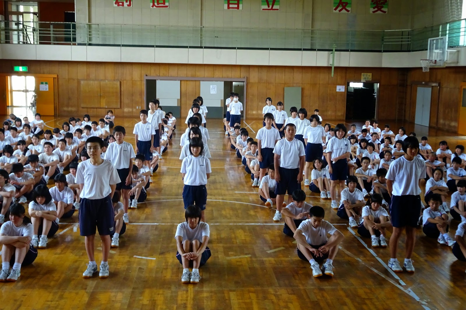 今日の全校集会は、県大会の報告と表彰、期末テストの表彰でした。